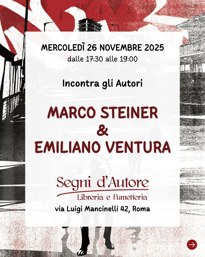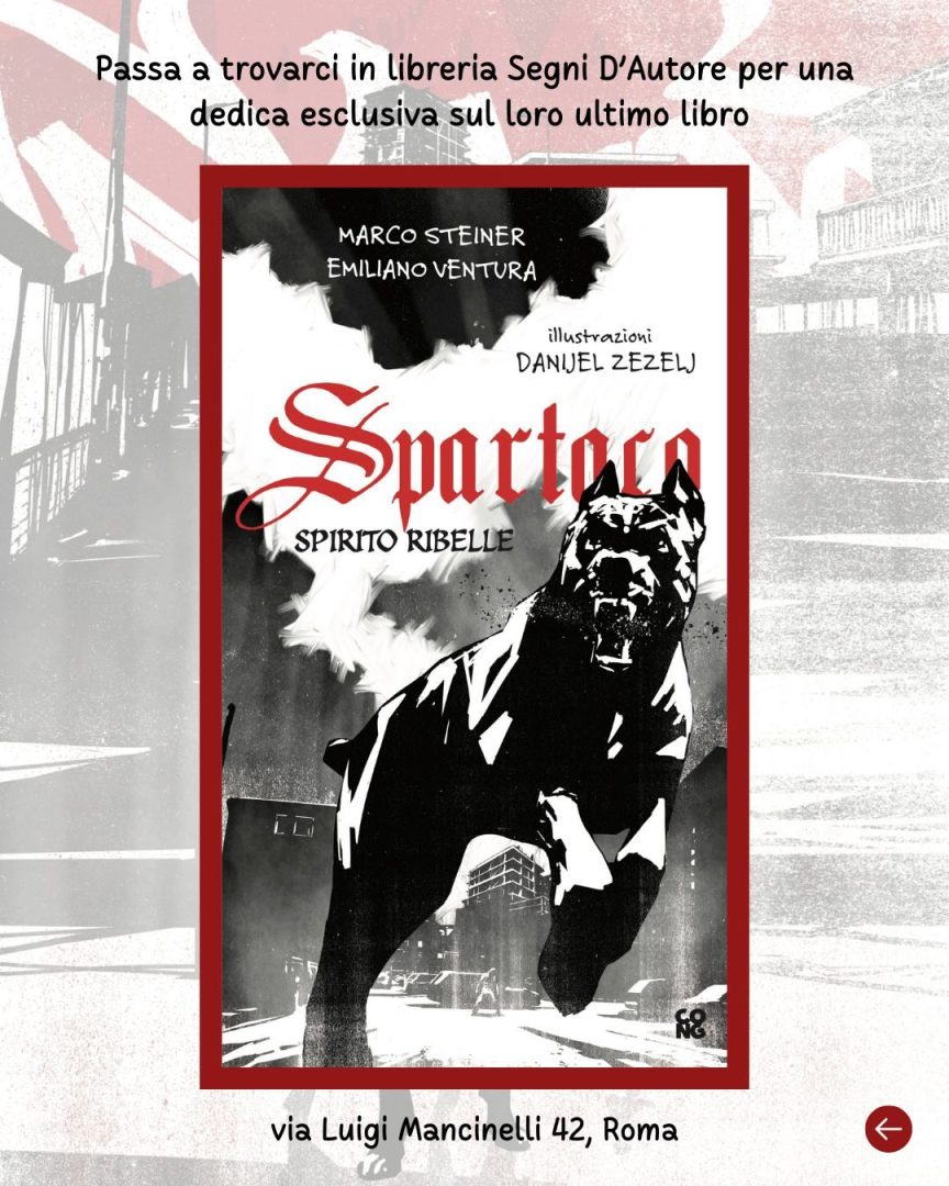 Il 26 novembre: incontro con Marco Steiner e Emiliano Ventura, dalle ore 17:30 alle 19:00. Gli Autori risponderanno alle domande dei lettori - sessione di dediche sul libro Spartaco, spirito ribelle, illustrato da Danijel Žeželj. (Cong Edizioni)Libreria Segni d'Autore - Roma